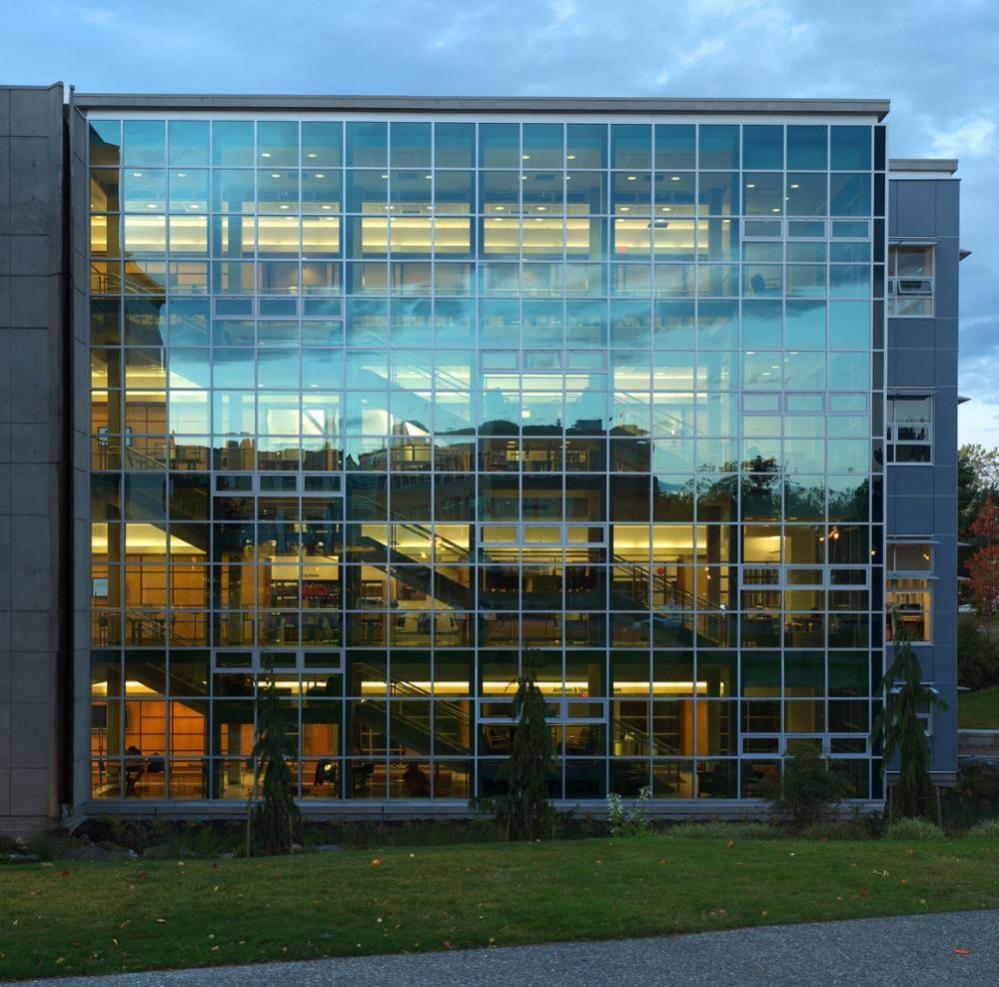 Curtainwall is an aluminum-framed wall containing infills of glass. The framing is attached to the building structure and does not carry.